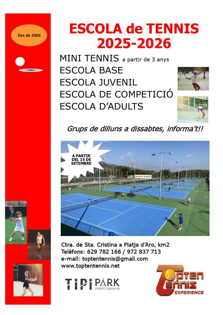 Ja estan obertes les inscripcions de l’escola de tennis per al curs 2025-2026 per a nens/es de 3 a 18 anys. Oferim diferents programes en funció de l’edat i el nivell: mini tennis, escola base, escola juvenil, escola de competició i escola d’adults. Tenim grups d’entrenament de dilluns a dissabte.